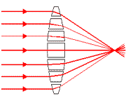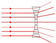 نشان می دهد که عدسی محدب را می توان مجموعه از منشورهایی با زاویه های
